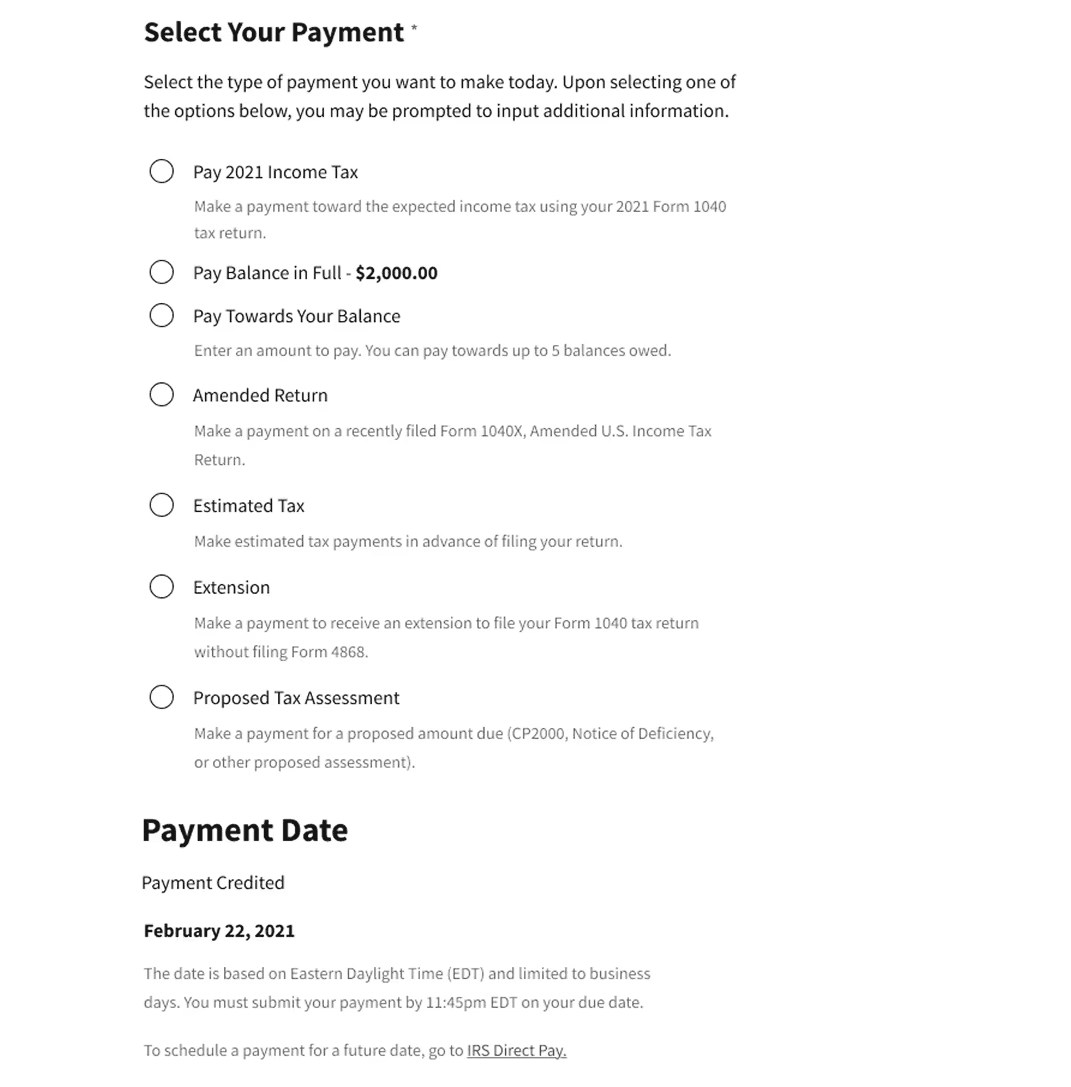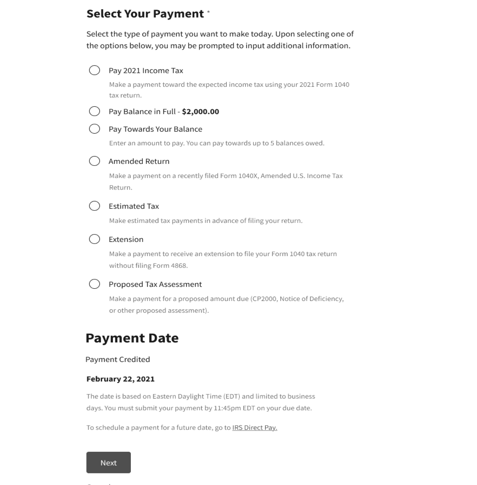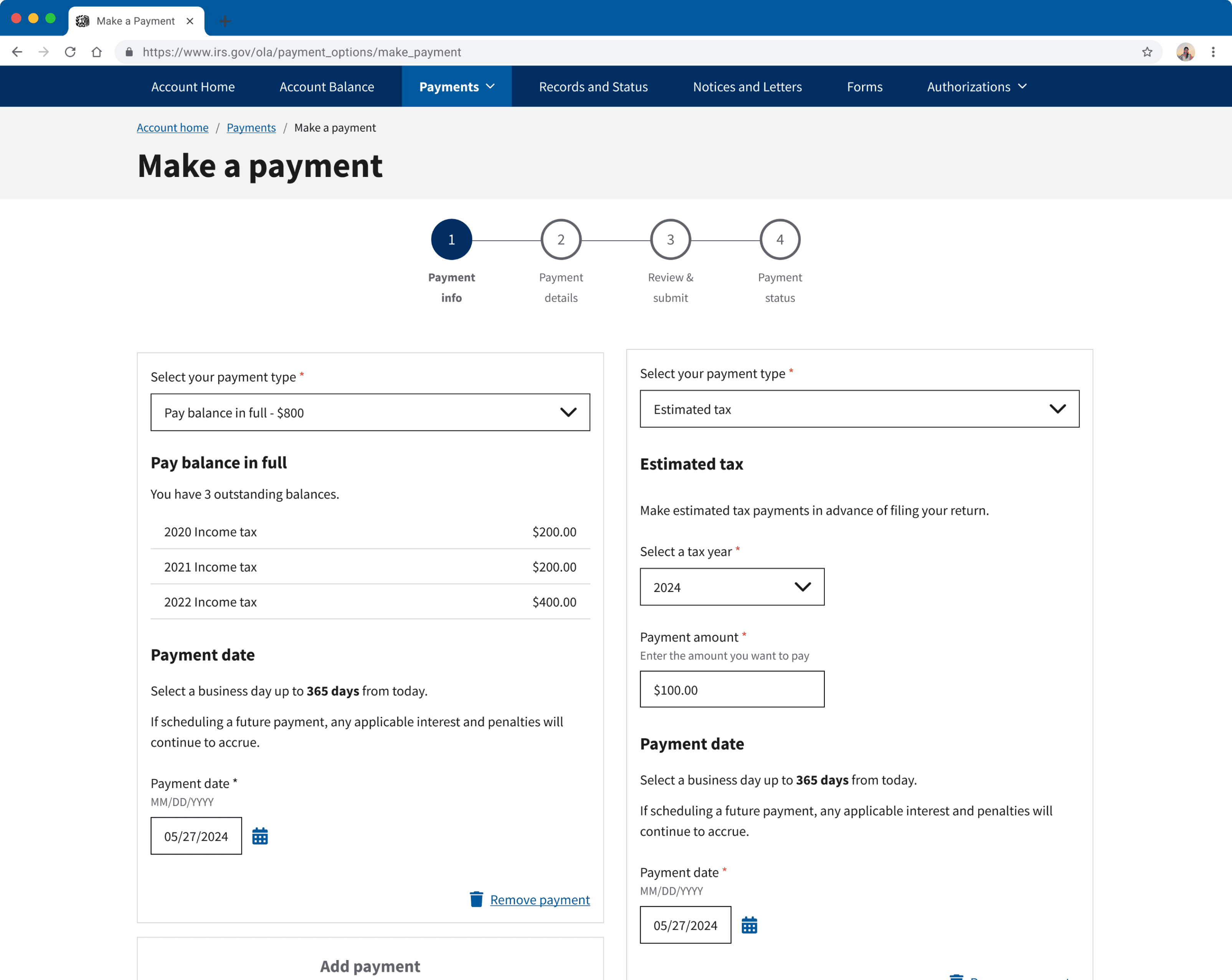 Could only select one choice per session. Only at the bottom of the page, did they mention starting over payments at IRS Direct Pay in order to schedule them.