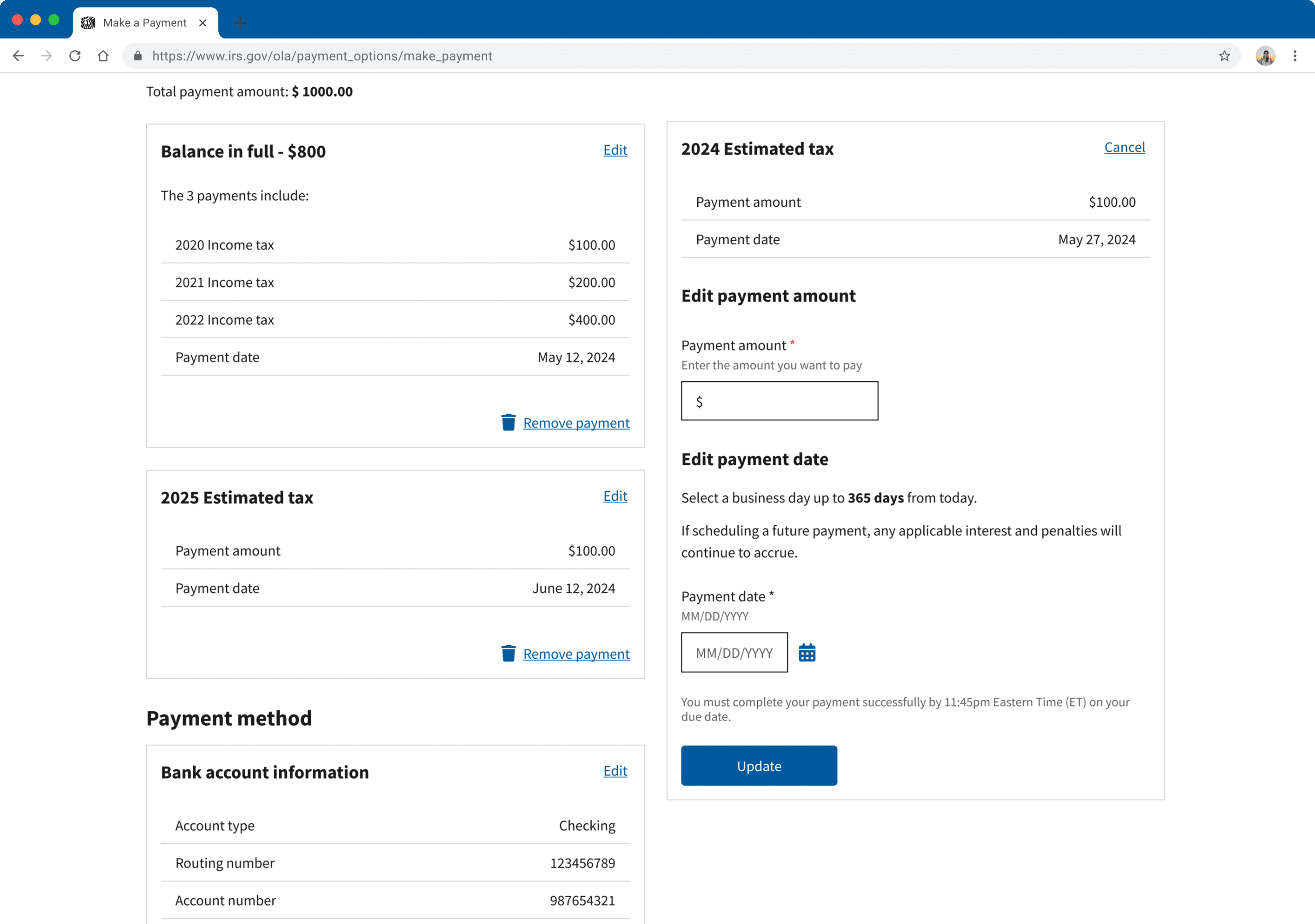 Users can now select multiple payment type options & assign payment dates within a single checkout, giving them more control & saving them time.