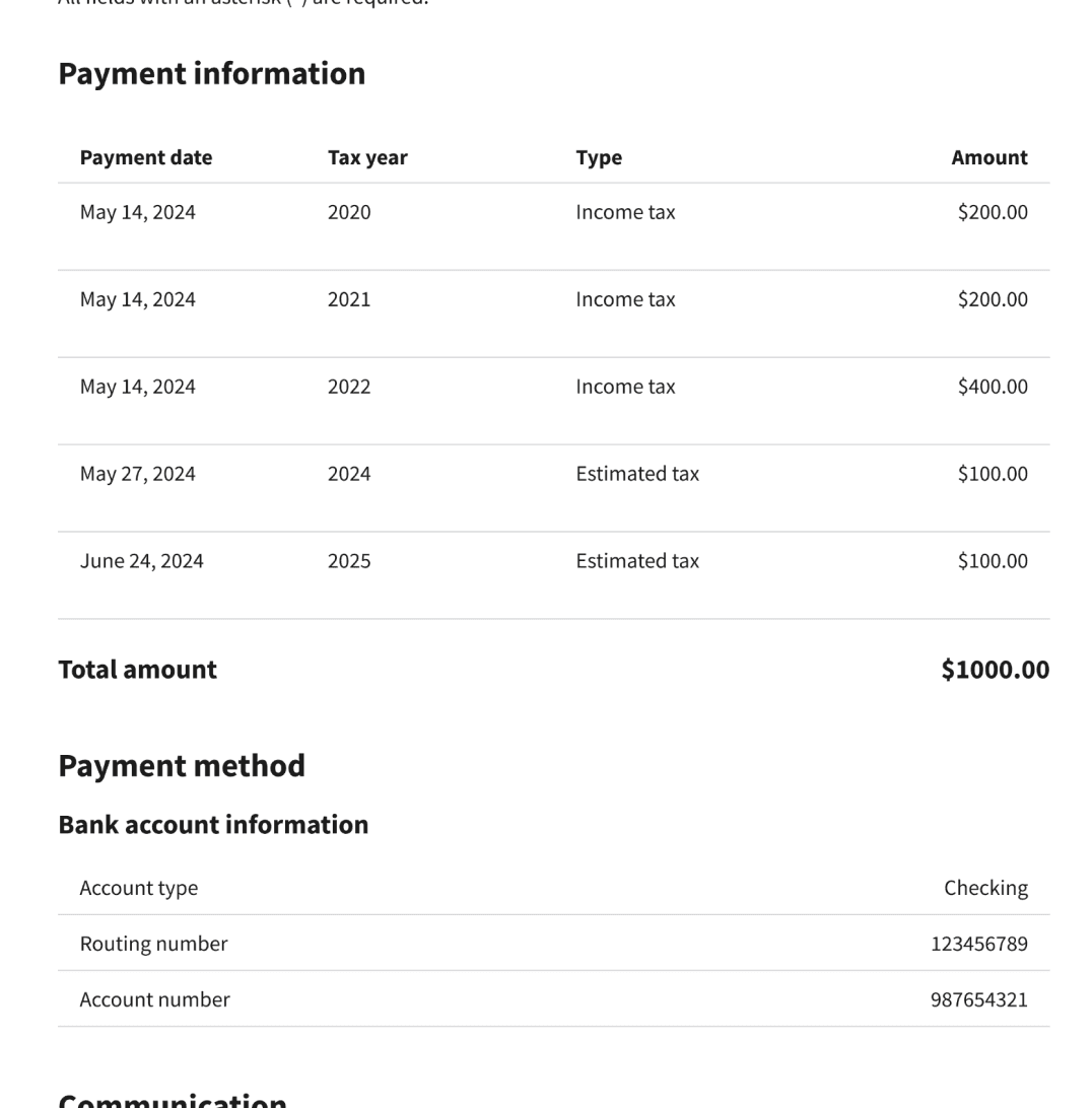 The new “Add Payment” card gives quick access to dynamic stacking of different payment types. Payment date fields are within each added payment.